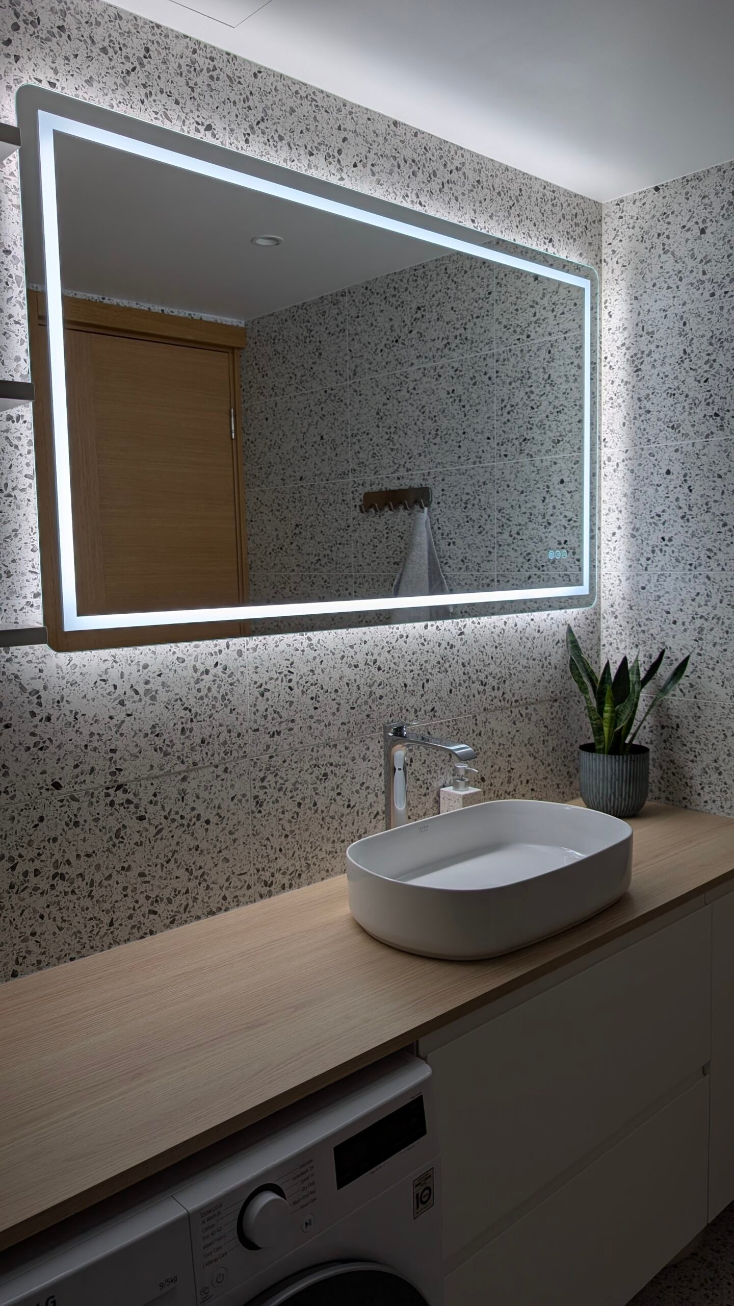 HUGO 1200×800 mm LED mirror – moderns un izteiksmīgs modelis, radīts mūsu klientu iedvesmots kā funkcionālāka un universālāka taisnstūra divkāršā apgaismojuma versija. Tas lieliski piemērots gan plašām, gan kompaktām vannas istabām, kur nepieciešams spilgts, efektīvs un estētisks apgaismojums.