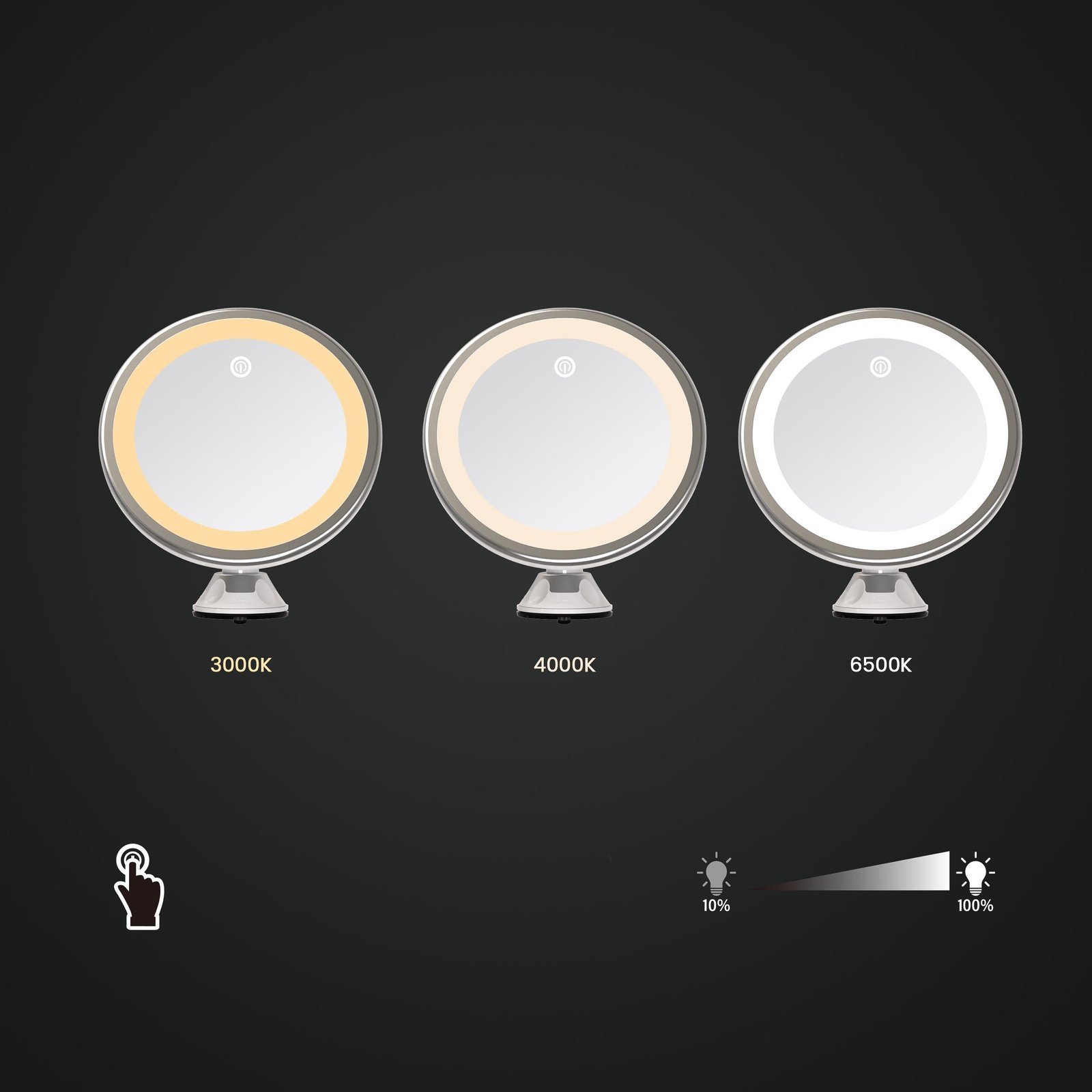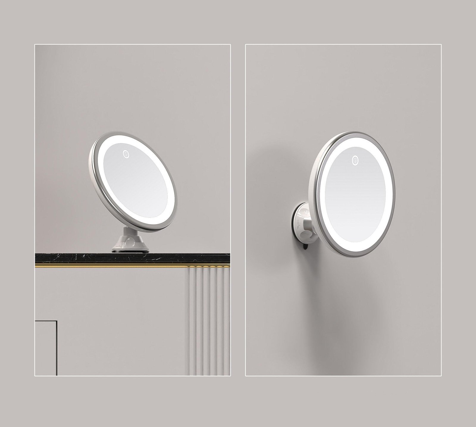 IRIS 200 mm round LED make-up mirror - A convenient, modern and very practical solution for those who want an additional illuminated magnifying mirror without damaging the bathroom interior or the main LED mirror.