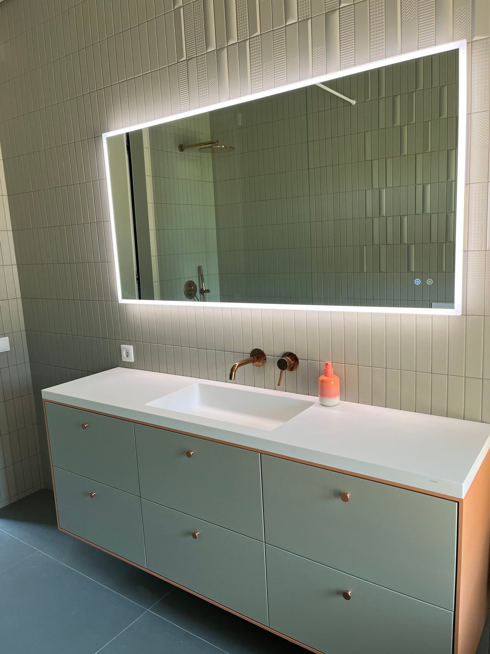 Modeļa galvenā iezīme – priekšējā LED apgaismojuma josla visapkārt spoguļa perimetram. Tā nodrošina spilgtu, vienmērīgu un bezēnu apgaismojumu, kas ir ideāli piemērots grimam, skūšanai un ikdienas kopšanas rituāliem. JUDI2 apgaismojums ir viens no efektīvākajiem mūsu kolekcijā, tādēļ šis modelis bieži kalpo kā galvenais telpas gaismas avots.