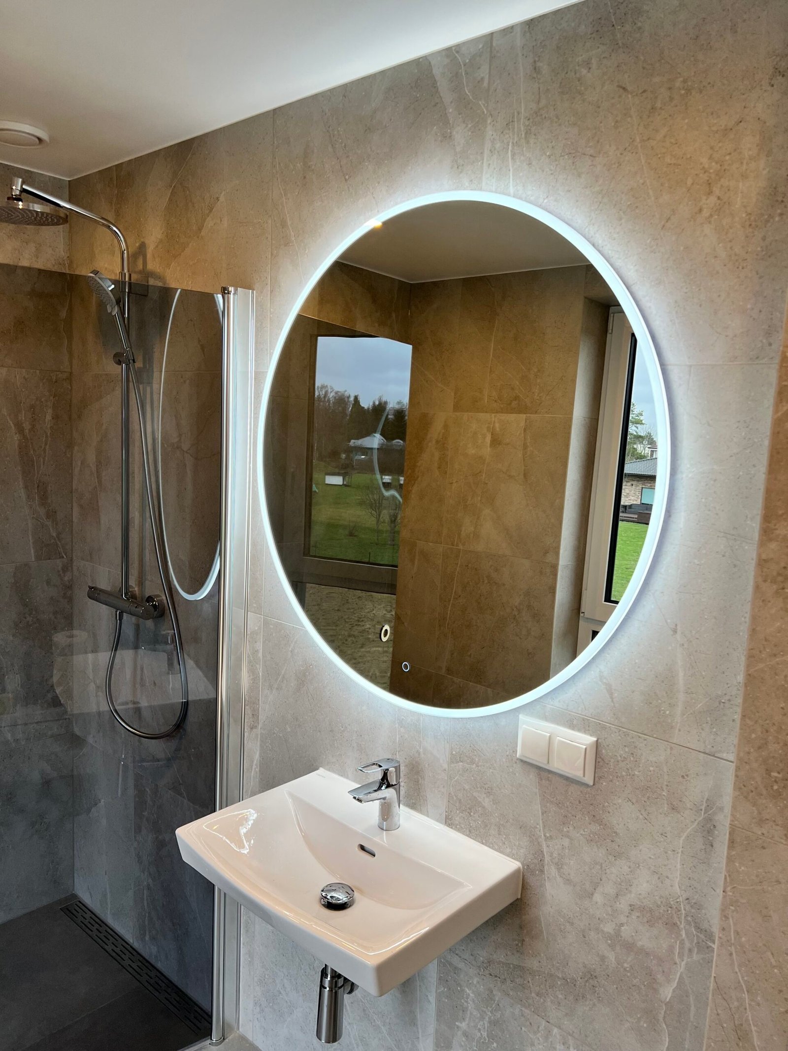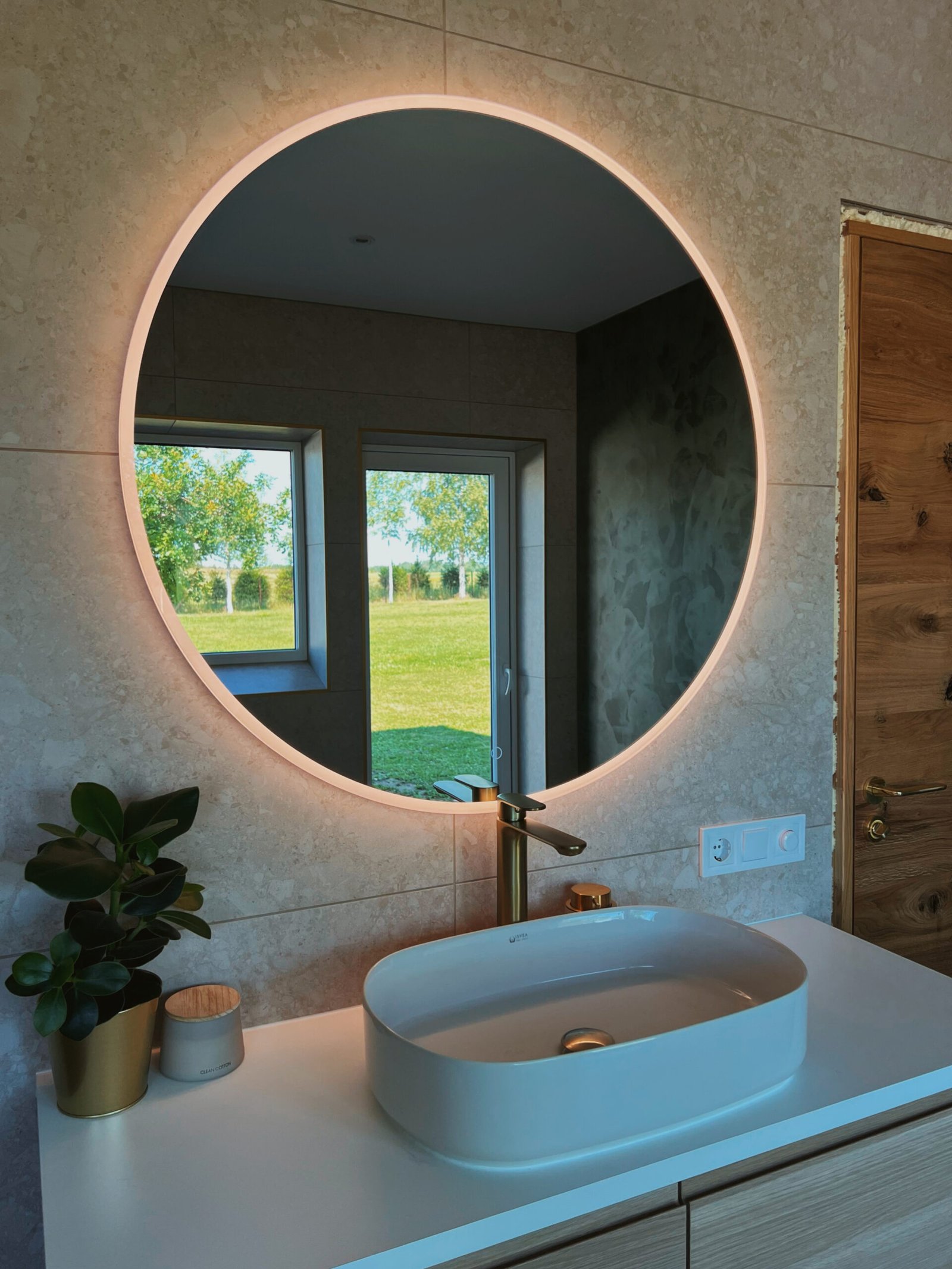 RENE 900 mm apaļš LED spogulis – moderns, universāls un funkcionāls modelis, kas piemērots tiem, kuri vēlas estētisku un kvalitatīvu apgaismojumu vienā risinājumā. Apaļā forma telpai piešķir vizuālu līdzsvaru un mājīgumu, padarot RENE par lielisku izvēli gan modernām, gan klasiskām vannas istabām.