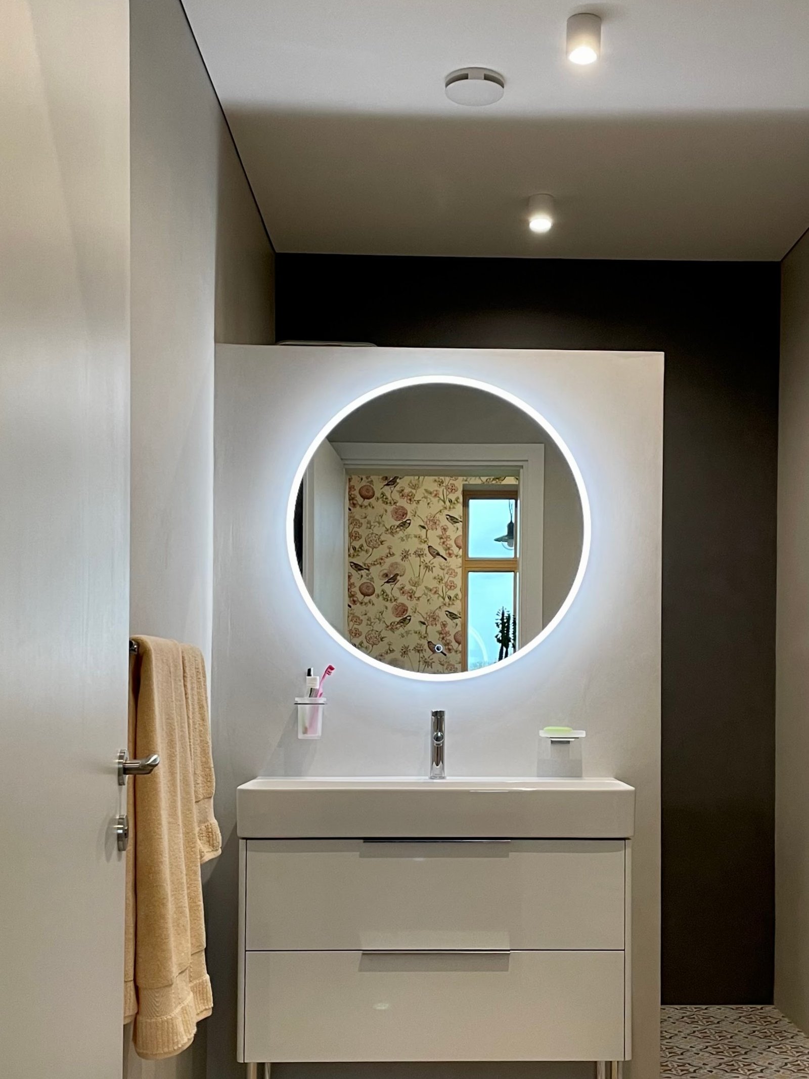 RENE 900 mm – elegants un funkcionāls LED spogulis, kas izceļ telpas dizainu un uzlabo ikdienas komfortu.