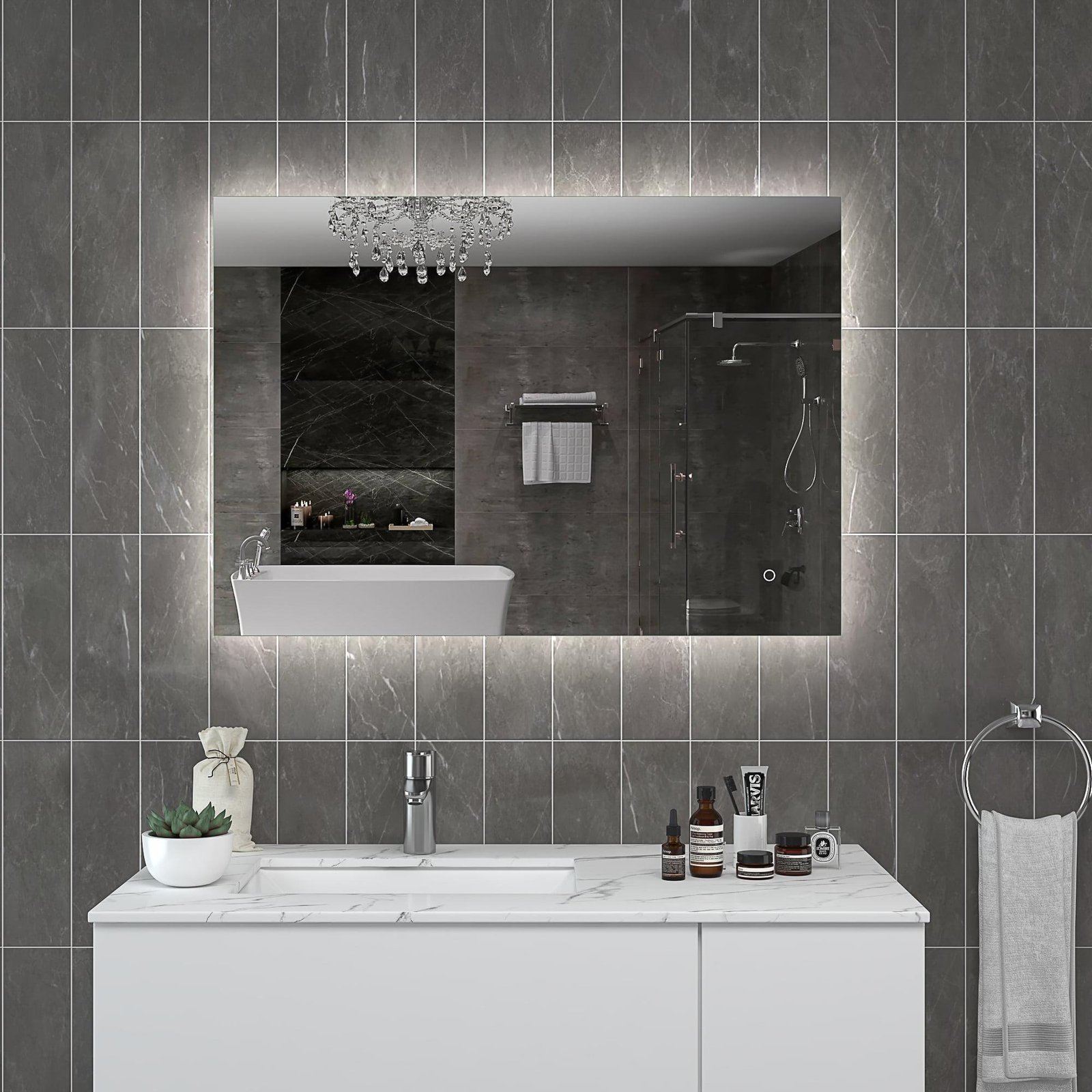 KAREN 1200×800 мм - Стильное, более широкое светодиодное зеркало, которое добавит в ваш интерьер современную теплоту и изысканность.