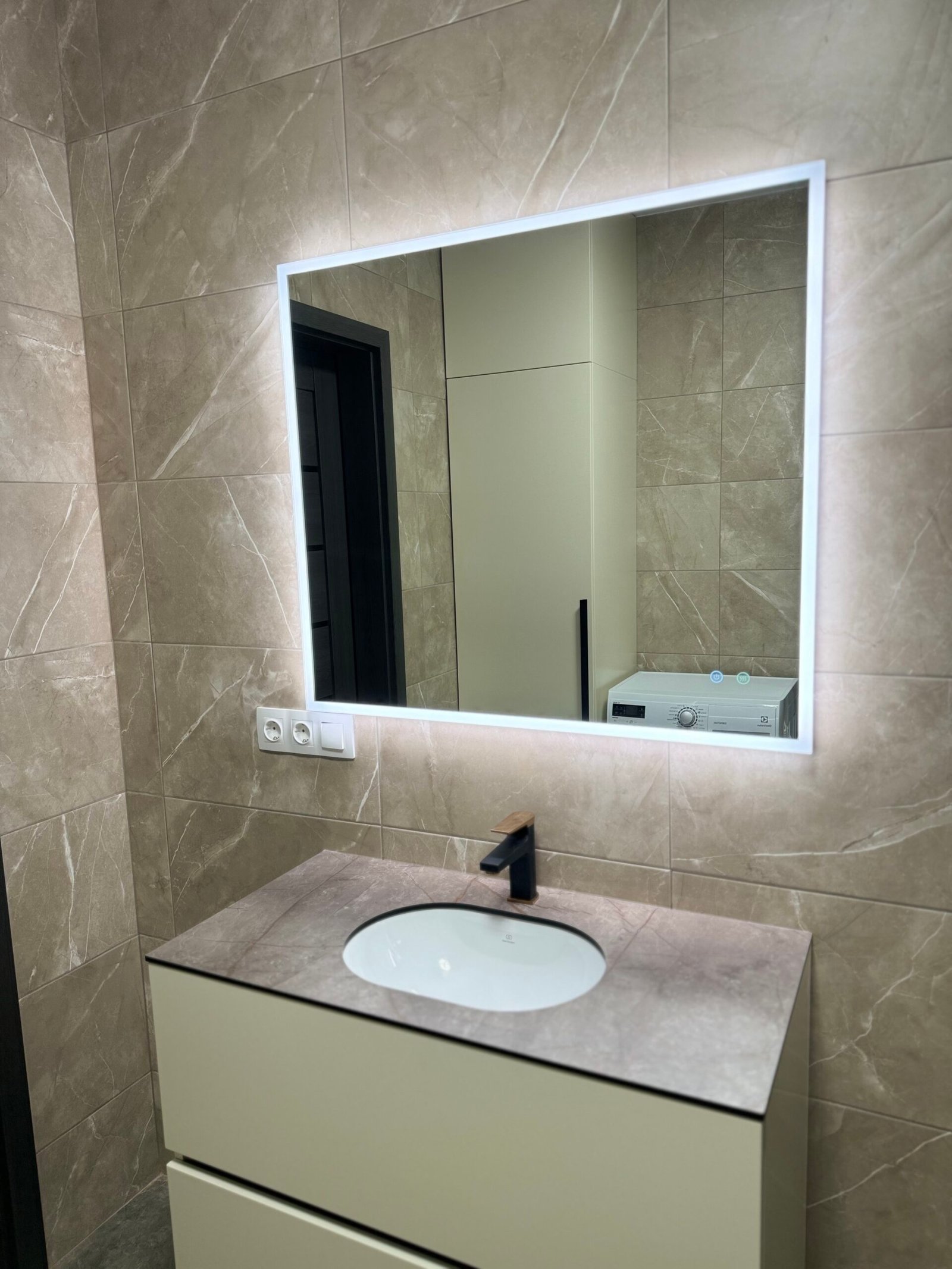 JUDI2 900×800 мм светодиодное зеркало – viens no mūsu populārākajiem modeļiem, ko klienti īpaši iecienījuši tā funkcionalitātes un modernā dizaina dēļ. Spoguli var uzstādīt gan vertikāli, gan horizontāli, ļaujot to pielāgot jebkurai vannas istabas telpai.