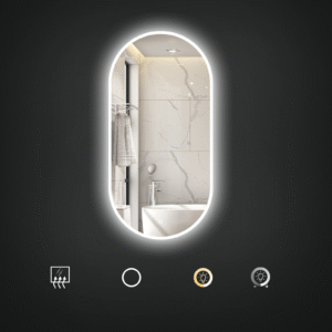Овальное светодиодное зеркало LYRA 600×1200 мм с фронтальной подсветкой (форма таблетки) - современное и стильное решение, которое идеально впишется в современную ванную комнату или другой интерьер. Форма столешницы придает помещению элегантность и уникальность, становясь своеобразным дизайнерским акцентом.