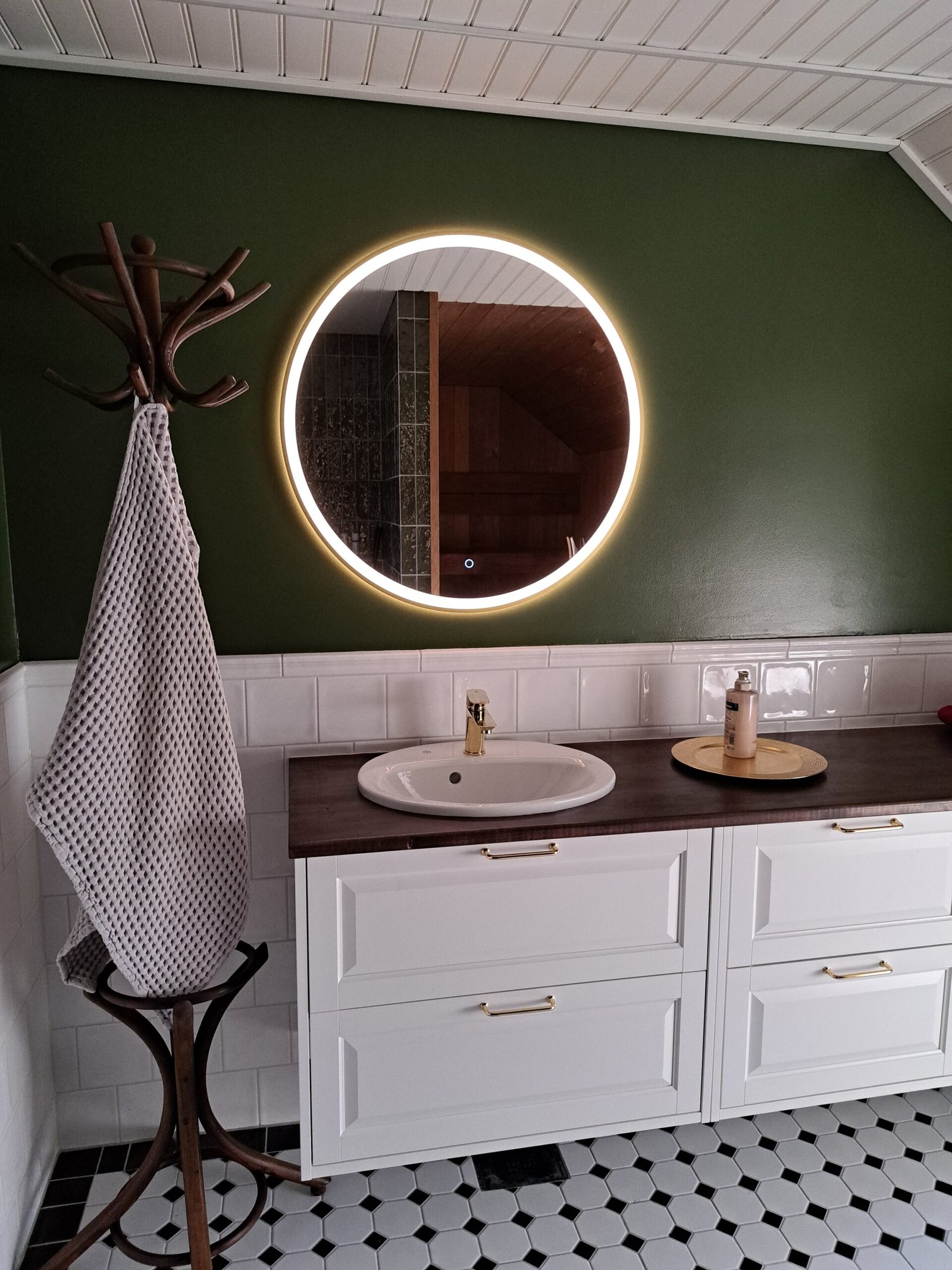 Зеркало изготовлено из Серебристое стекло 5 мм без медиС полированными краями и антикоррозийным покрытием. Прочный Светодиодная лента SMD darbojas vairāk nekā 50 000 stundu, drošību apliecina CE, ETL, RoHS Сертификаты.