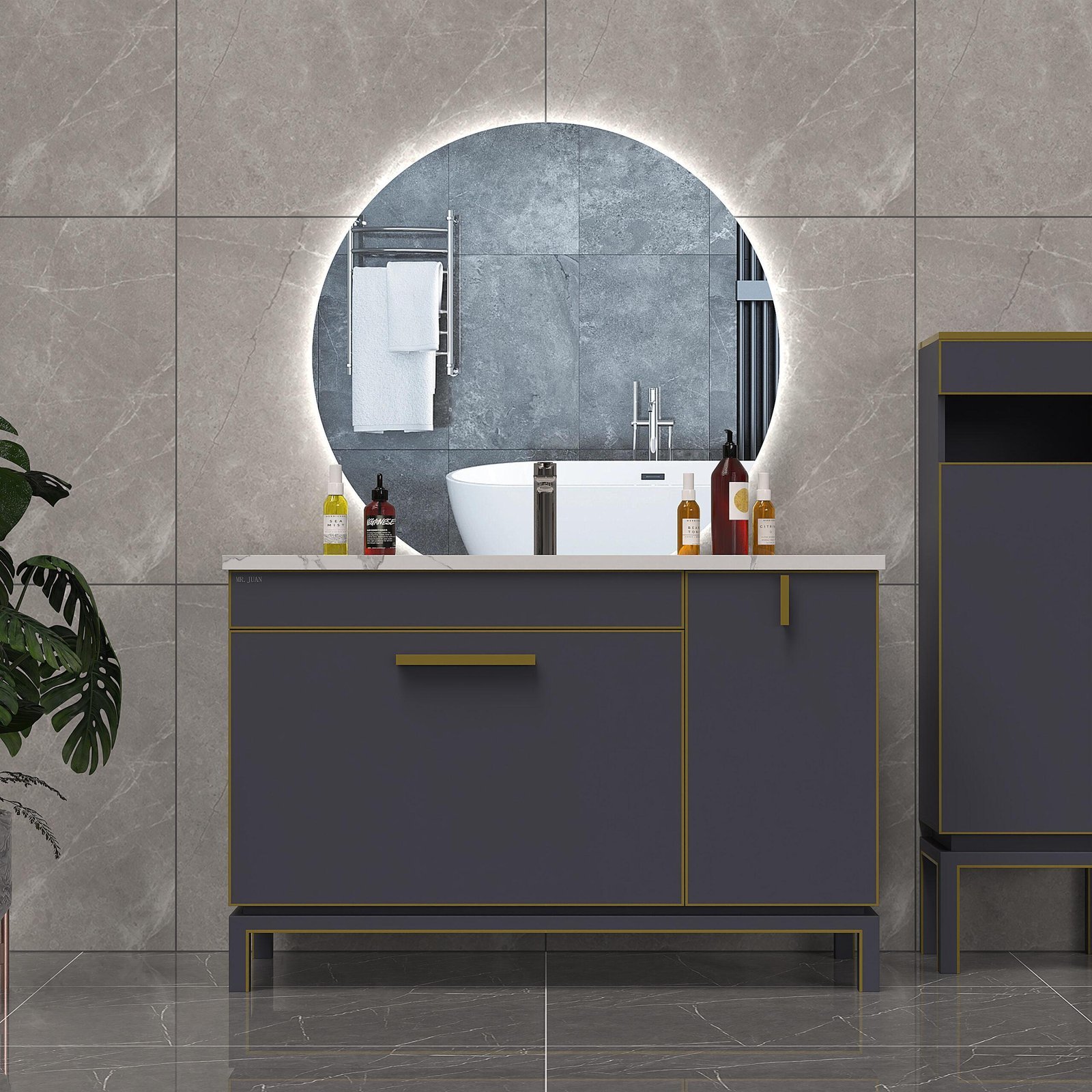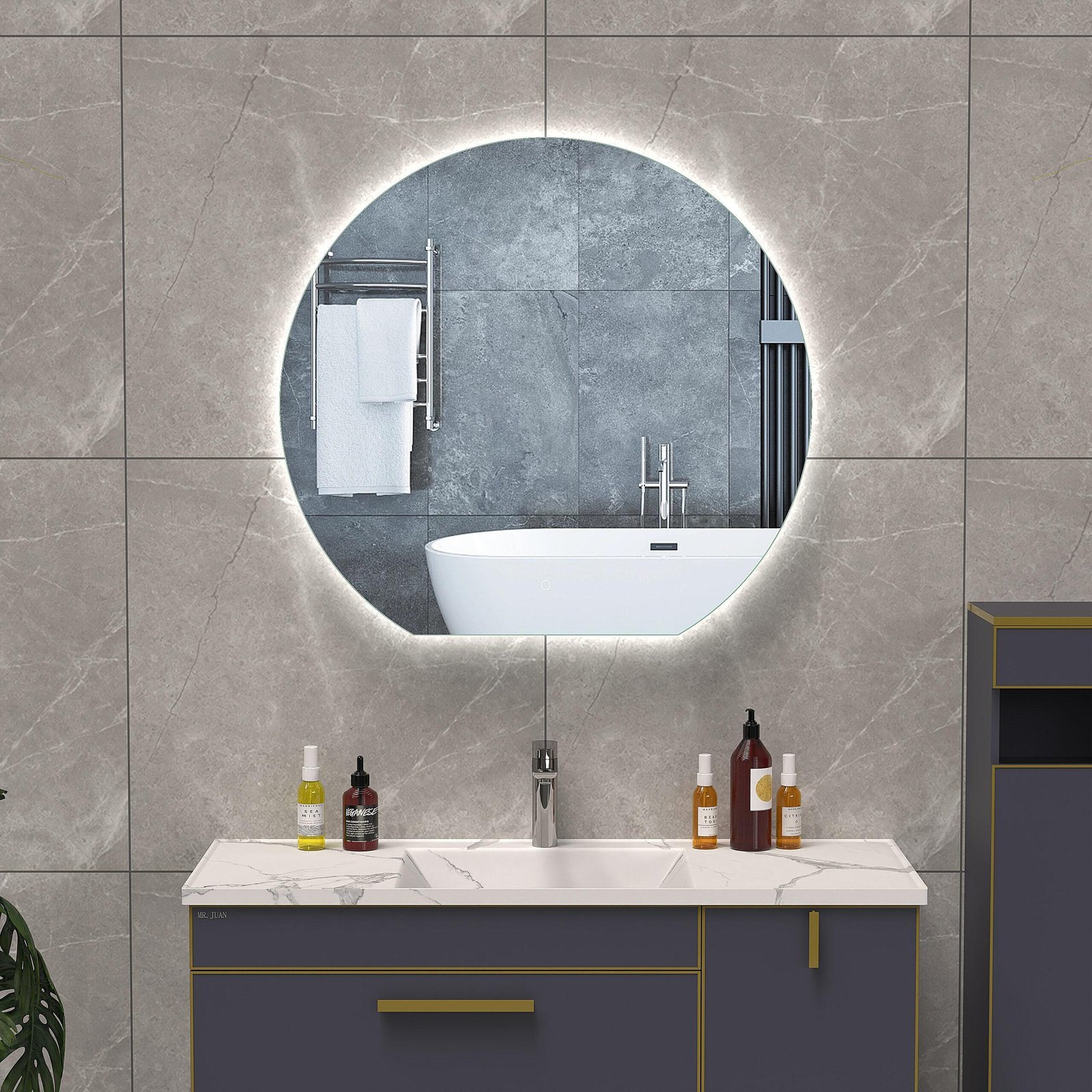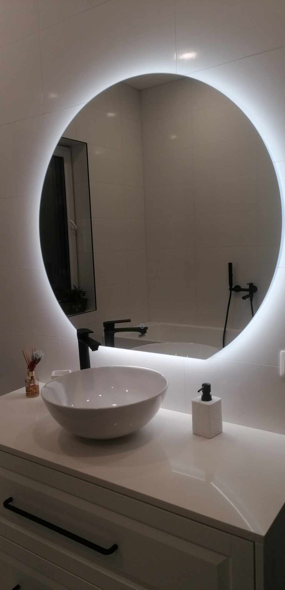 ROMEO 1000 mm pusapaļais LED spogulis ar fona apgaismojumu – moderns un elegants risinājums, kas piešķirs jūsu vannas istabai izteiksmīgu un unikālu akcentu. Šis iespaidīgā izmēra spogulis (1000×933 mm) piesaista uzmanību gan ar savu formu, gan ar progresīvajām funkcijām.