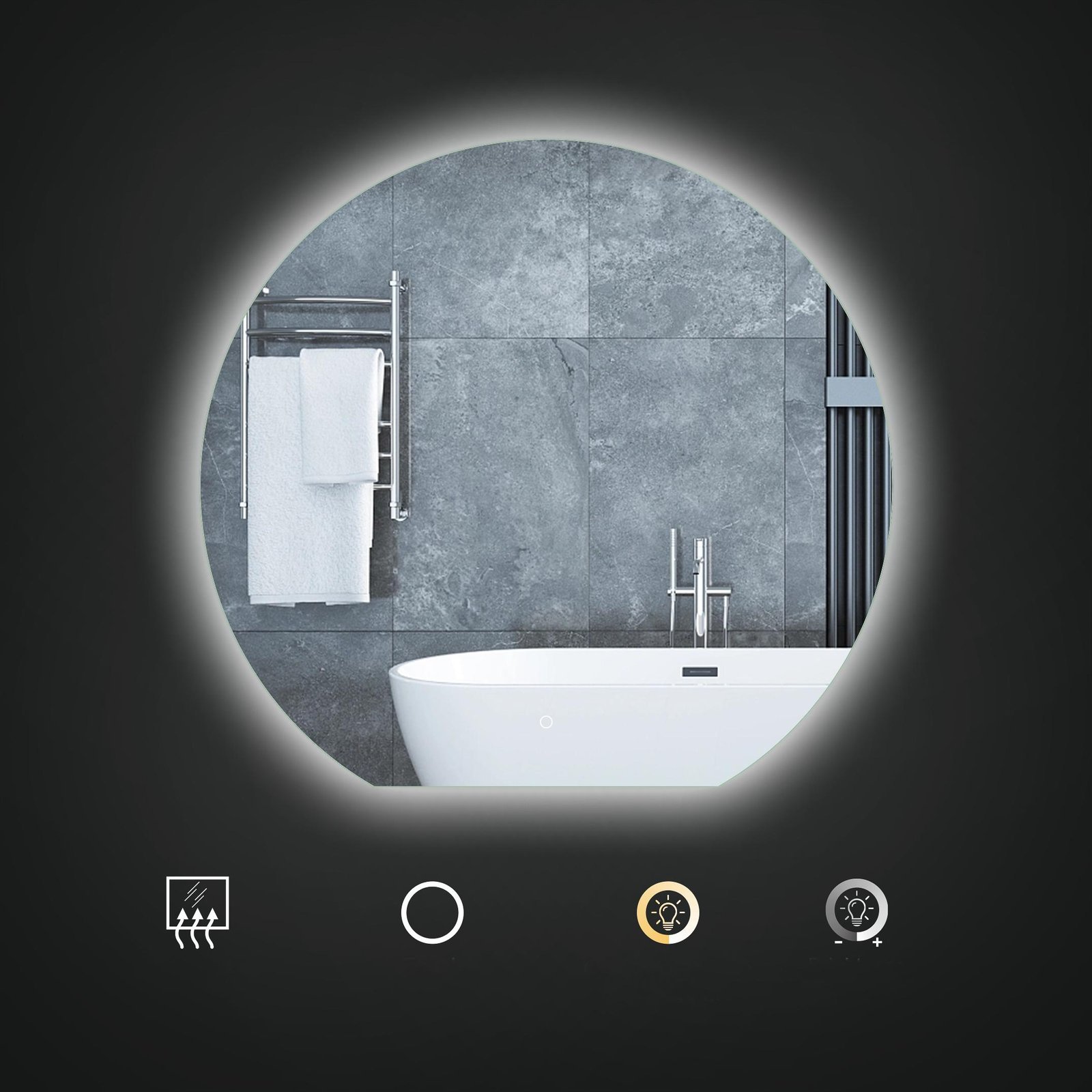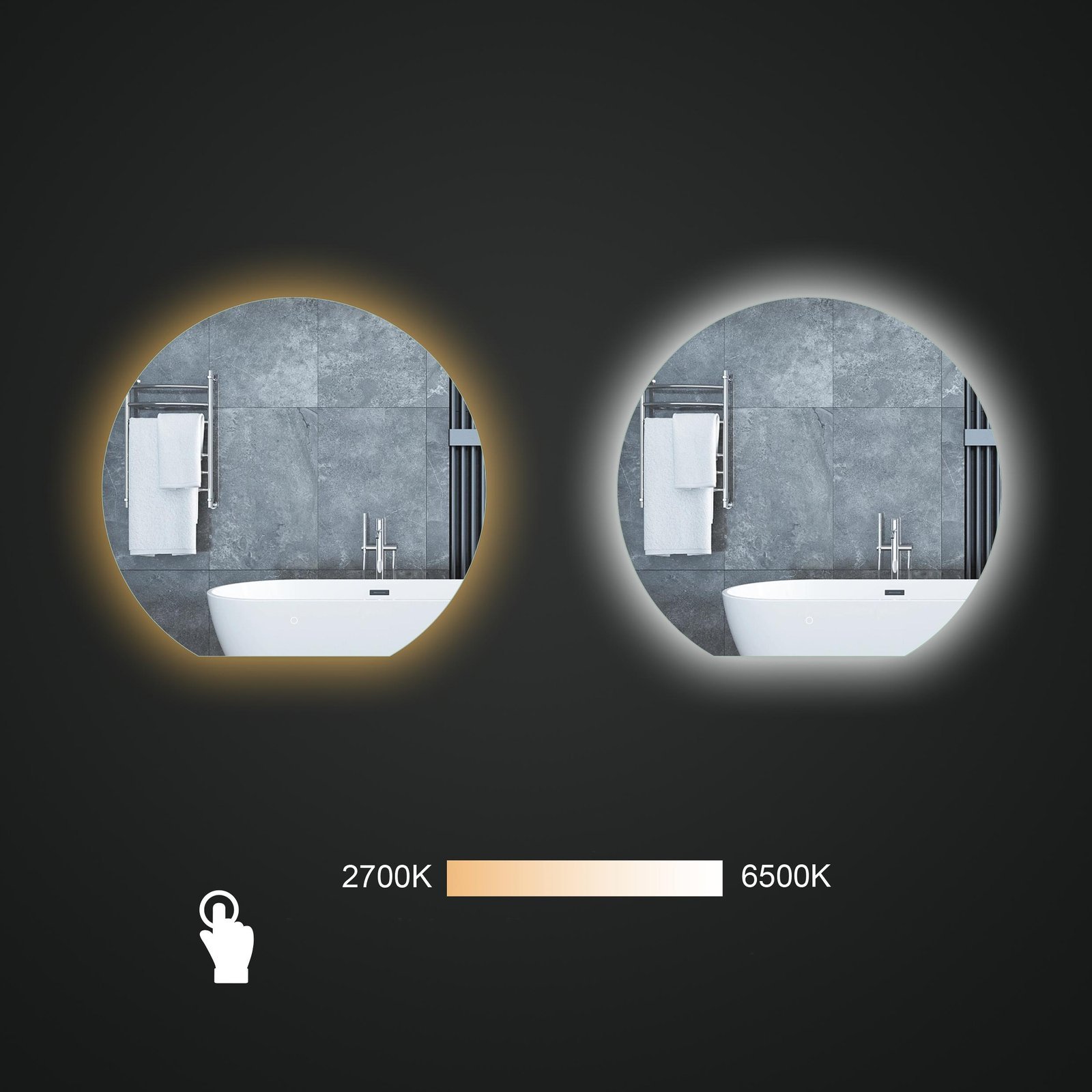 Интегрированный Интеллектуальный сенсорный переключатель ļauj ar vienu pieskārienu ieslēgt/izslēgt spoguli, regulēt spilgtumu no 10 līdz 100%, kā arī izvēlēties piemērotāko krāsu temperatūru (2700K–6500K) atbilstoši noskaņojumam vai vajadzībām. Papildu ērtību nodrošina automātiskā pretaprasošanās funkcija, kas ieslēdzas reizē ar spoguli – stikls vienmēr paliek dzidrs, pat pēc karstas dušas. Iestatījumi tiek saglabāti, tāpēc spogulis nav jāregulē katru reizi no jauna.
