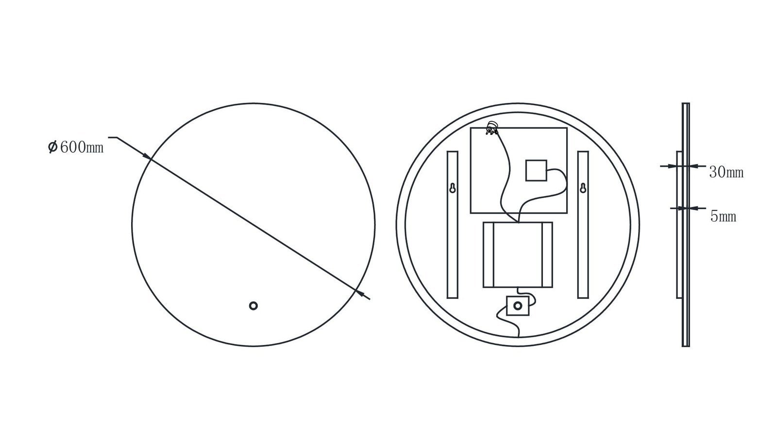 SUZI 600 mm apaļš LED spogulis – elegants un universāls modelis, kas piešķir vannas istabai siltumu un mūsdienīgu estētiku. Tā 600 mm izmērs lieliski iederas gan kompaktās, gan standarta vannas istabās.