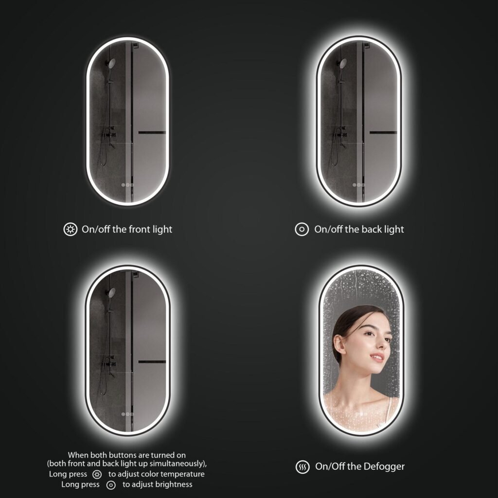 UZMANĪBU: šim LED spogulim ir 1 skārienjutīgs slēdzis, ar kuru varēsiet ieslēgt/izslēgt spoguli, pārslēgt apgaismojuma režīmus un regulēt gaismas spilgtumu un krāsu temperatūru (siltumu).